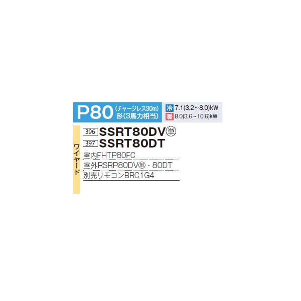 ダイキン SSRT80DT 業務用エアコン 厨房用 ペア FIVESTARZEAS P80形 3馬力 三相 ワイヤード ♪