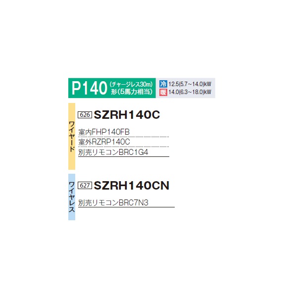 ダイキン SZRH140CN 業務用エアコン 天井吊形 標準 ペア EcoZEAS P140形 5馬力 三相 ワイヤレス ♪