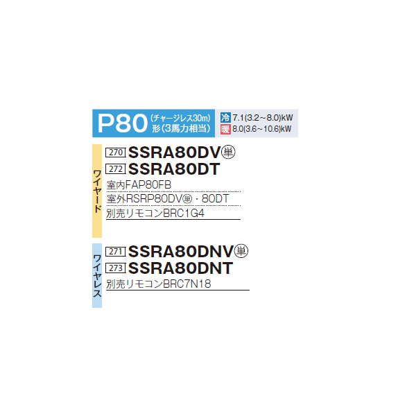 ダイキン SSRA80DNV 業務用エアコン 壁掛形 ペア FIVESTARZEAS P80形 3馬力 単相 ワイヤレス ♪