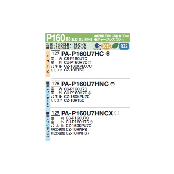 パナソニック PA-P160U7HC 業務用エアコン 4方向天井カセット形 XEPHY Eco エコナビ シングル P160形 6馬力 三相200V ♪