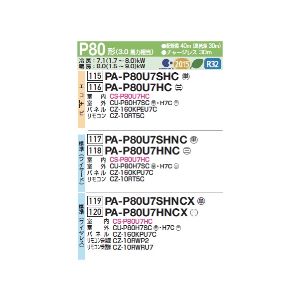 パナソニック PA-P80U7HNCX 業務用エアコン 4方向天井カセット形 XEPHY Eco 標準(ワイヤレス) シングル P80 形3.0馬力 三相200V ♪ [戻る]