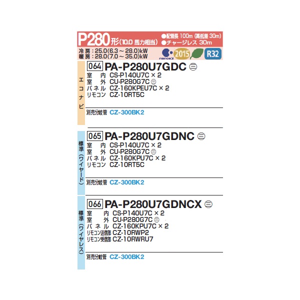 パナソニック 『PA-P280U7GDNC+分岐管』 業務用エアコン 4方向天井カセット形 XEPHY Premium 標準 同時ツイン P280形 10馬力 三相200V ♪