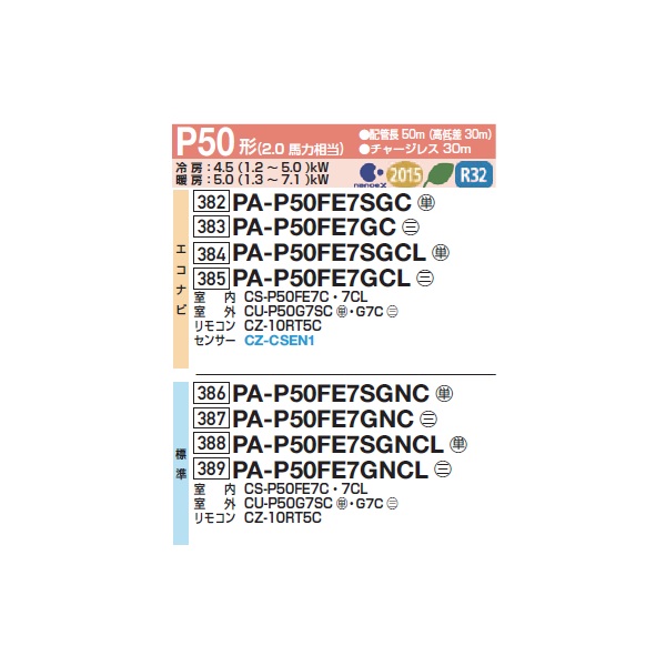 パナソニック PA-P50FE7SGCL 業務用エアコン ビルトインオールダクト形 XEPHY Premium エコナビ シングル P50形 2.0馬力 単相200V ♪