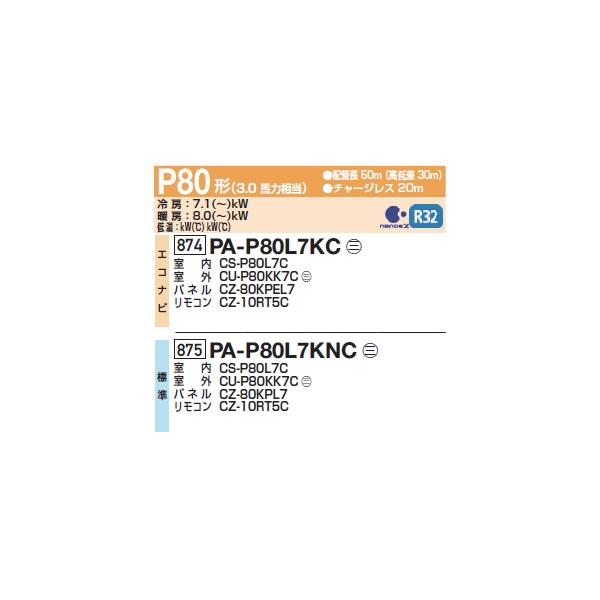 パナソニック PA-P80L7KC 業務用エアコン 2方向天井カセット形 フル暖 XEPHY 寒冷地向け エコナビ シングル P80形 3馬力 三相200V ♪
