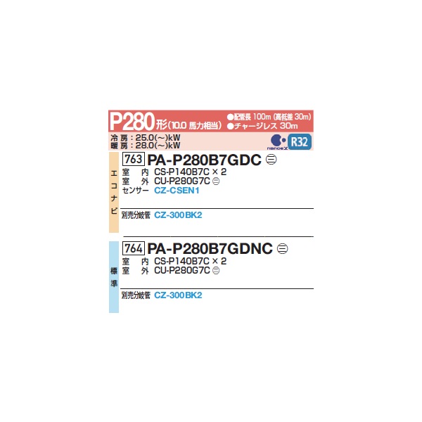 パナソニック 『PA-P280B7GDNC+分岐管』 業務用エアコン 床置形(スリム形) XEPHY Premium 標準 同時ツイン P280形 10馬力 三相200V ♪