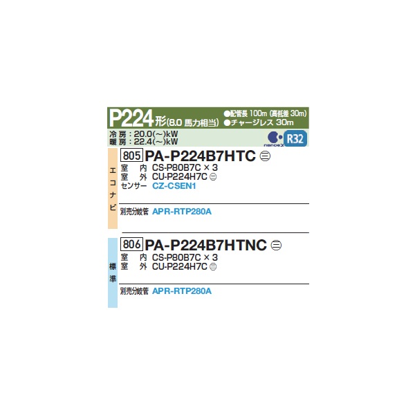 パナソニック 『PA-P224B7HTNC+分岐管』 業務用エアコン 床置形(スリム形) XEPHY Eco 標準 同時トリプル P224形 8馬力 三相200V ♪