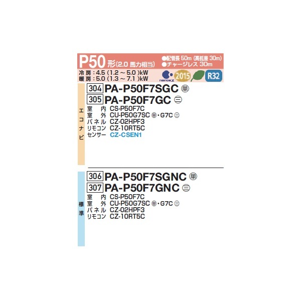 パナソニック PA-P50F7GC 業務用エアコン 天井ビルトインカセット形 XEPHY Premium エコナビ シングル P50形 2.0馬力 三相200V ♪