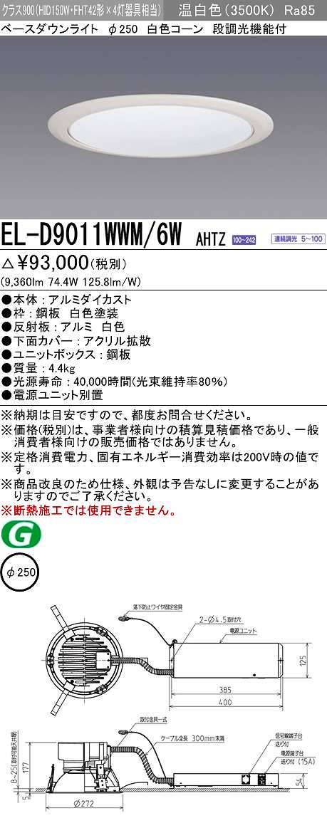 三菱 EL-D9011WWM/6WAHTZ LEDダウンライト 拡散シリーズ 一般用途 段調光機能付調光5〜100% 温白色 φ250 電源ユニット別置 受注生産品 [§]