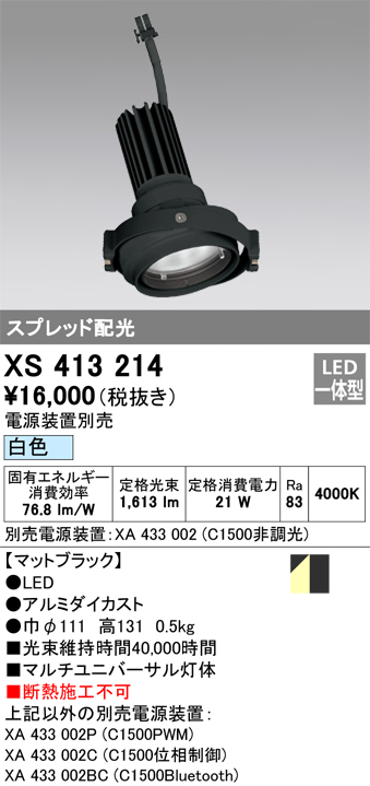 オーデリック XS413214 マルチユニバーサルダウンライト LED一体型 白色 電源装置別売 ブラック