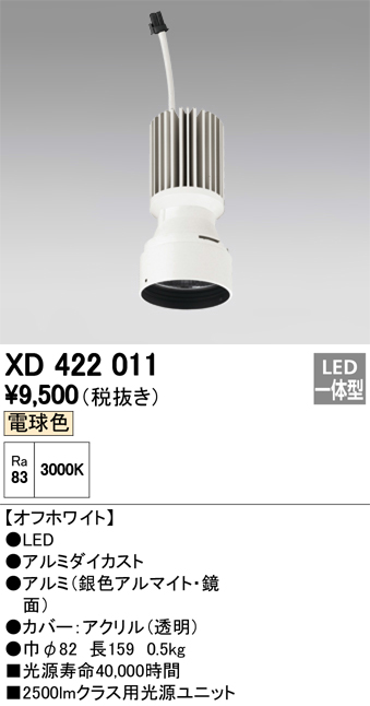 オーデリック XD422011 交換用光源ユニット PLUGGED シリーズ専用 LED一体型 電球色 オフホワイト