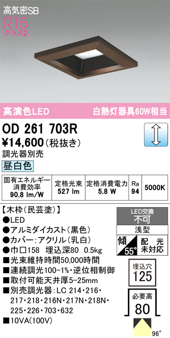 オーデリック OD261703R ダウンライト LED一体型 調光 調光器別売 昼白色 高気密SB 埋込穴□125 木枠(民芸塗)