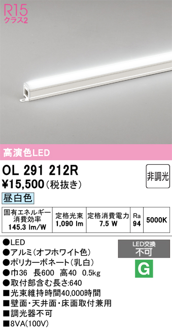オーデリック OL291212R 間接照明 非調光 LED一体型 昼白色 屋内用 長600 オフホワイト