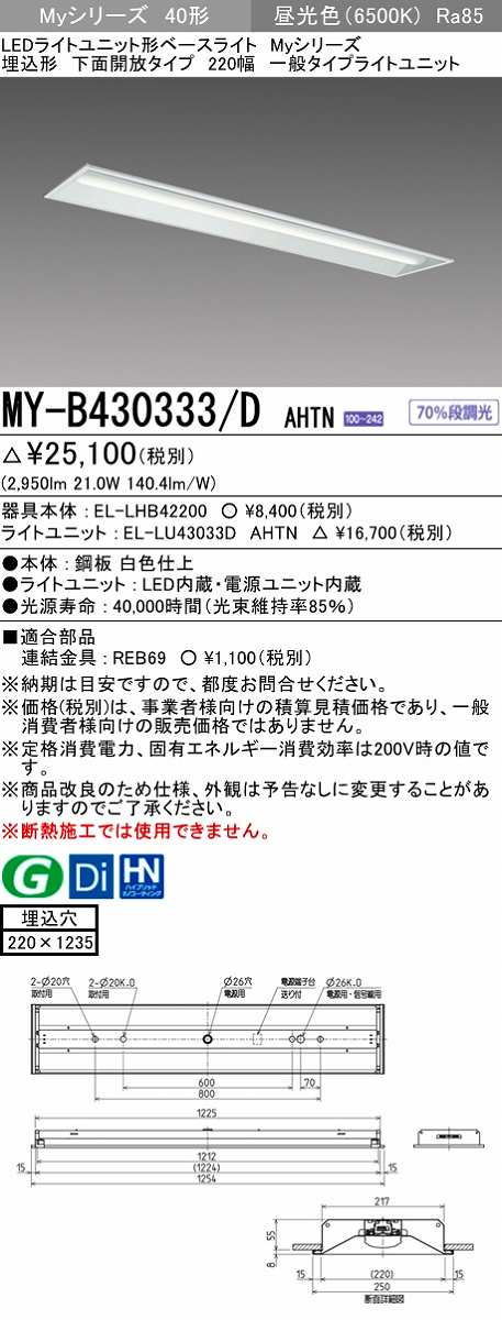 三菱 MY-B430333/D AHTN LEDライトユニット形ベースライト 埋込形 下面開放 220幅 一般タイプ 固定出カ 昼光色 受注生産品 [§]