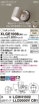 パナソニック XAD3100LKCE1(ランプ別梱) ダウンライト 埋込穴φ100 LED(電球色) 天井埋込型 高気密SB形 ホワイト