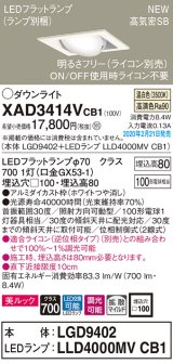 パナソニック XAD1400VCB1(ランプ別梱) ダウンライト 天井埋込型 LED(温白色) 高気密SB形 拡散マイルド配光 調光(ライコン別売) 埋込穴φ100 ホワイト