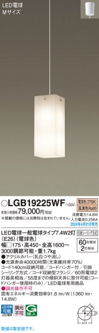 パナソニック XSZB10073CB1(ランプ別梱) ペンダント 調光(ライコン別売) LED(温白色) 天井吊下型 集光48度 直付タイプ LEDコンパクトランプ交換型 ホワイト