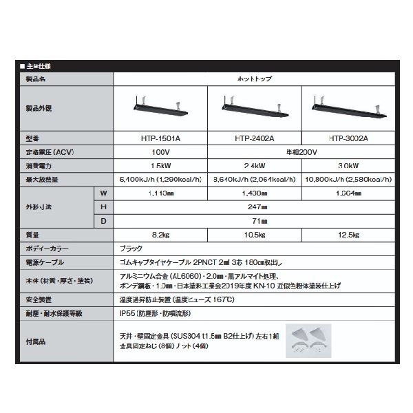 インターセントラル HTP-3002A ホットトップ 輻射式遠赤外線ヒーター 屋外・半屋外・屋内用 天井・壁付け共通ブラケット付 単相200V W1664×H246.7 ♪