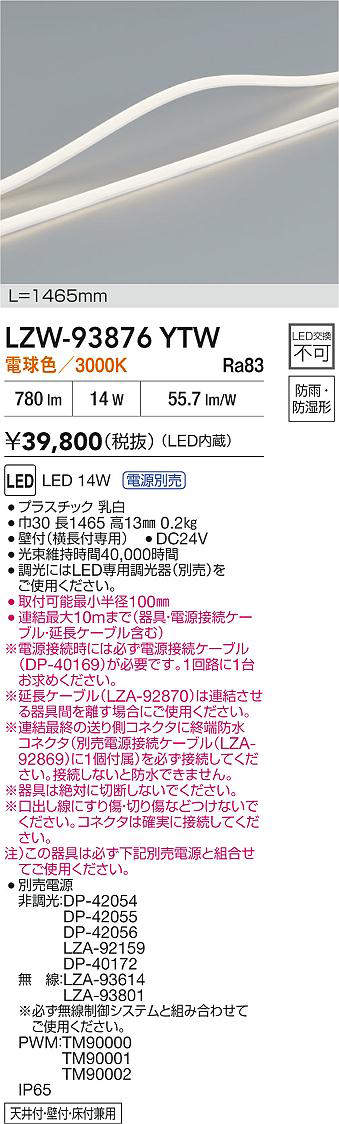大光電機(DAIKO) LZW-93876YTW 間接照明 L1470タイプ 電源別売 電球色 LED トップビュータイプ ドットレス 防雨・防湿形