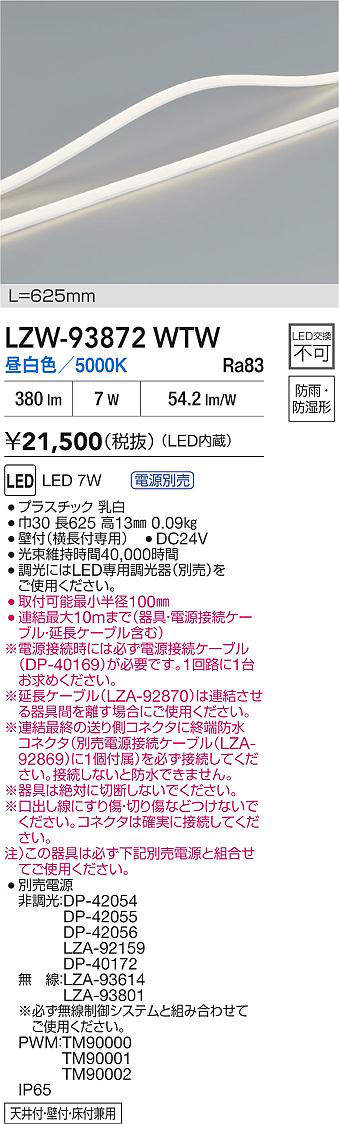 大光電機(DAIKO) LZW-93872WTW 間接照明 L630タイプ 電源別売 昼白色 LED トップビュータイプ ドットレス 防雨・防湿形 [lzw-93872wtw]