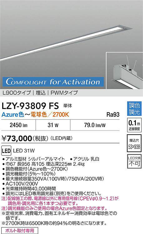 大光電機(DAIKO) LZY-93809FS ベースライト L900タイプ 調光(調光器別売) 電源内蔵 Azure色〜電球色 LED 埋込形 シルバーアルマイト 受注生産品[§]