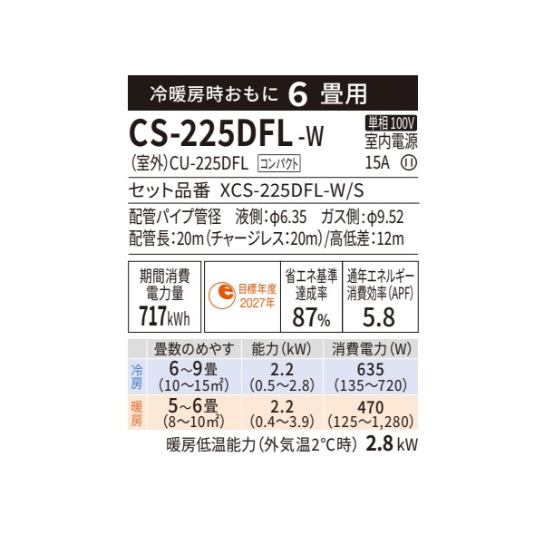 型番:XCS-225DFL-W/S / CS-225DFL-W / CS-225DFL / CS225DFL