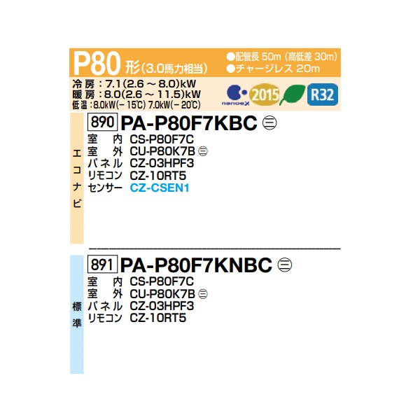 型番:PA-P80F7KNBC / PAP80F7KNBC / XPA-P80F7KNBC / XPAP80F7KNBC