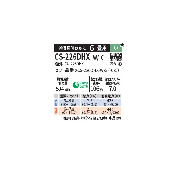 型番:XCS-226DHX-W/S / CS-226DHX-W / CS-226DHX / CS226DHX