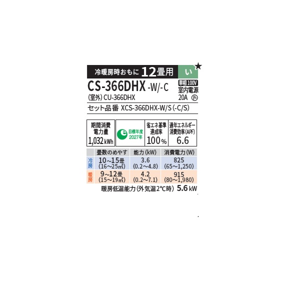 型番:XCS-366DHX-W/S / CS-366DHX-W / CS-366DHX / CS366DHX