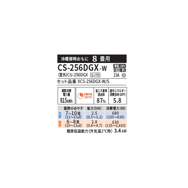 型番:XCS-256DGX-W/S / CS-256DGX-W / CS-256DGX / CS256DGX