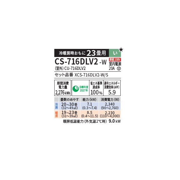 型番:XCS-716DLV2-W/S / CS-716DLV2-W / CS-716DLV2 / CS716DLV2