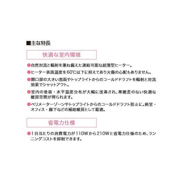 ●自然対流と輻射を兼ね備えた連結可能な超薄型ヒーター。