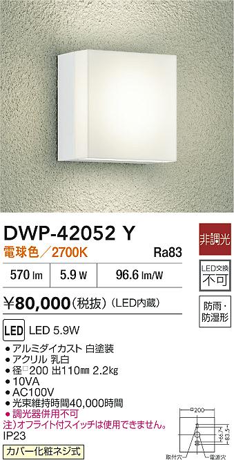 大光電機(DAIKO) DWP-42052Y アウトドアライト ポーチ灯 非調光 電球色 LED内蔵 防雨・防湿形 ホワイト