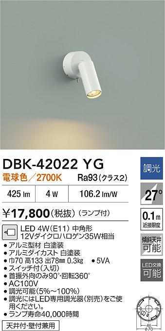 大光電機(DAIKO) DBK-42022YG スポットライト 調光(調光器別売) 電球色 LED ランプ付 ホワイト [dbk-42022yg]