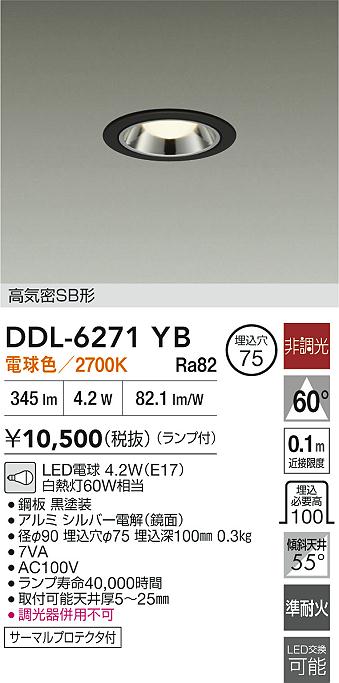 大光電機(DAIKO) DDL-6271YB ダウンライト 埋込穴φ75 非調光 電球色 LED ランプ付 高気密SB形 ブラック