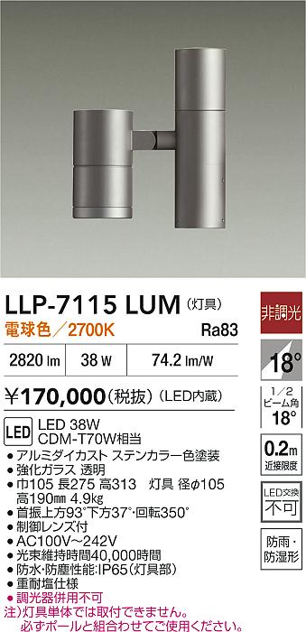 大光電機(DAIKO) LLP-7115LUM アウトドアライト ポールスポットライト 非調光 電球色 灯具本体 1灯用 LED内蔵 ポール別売 防雨・防湿型 ステンカラー [llp-7115lum]