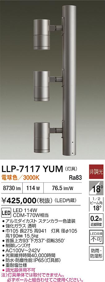大光電機(DAIKO) LLP-7117YUM アウトドアライト ポールスポットライト 非調光 電球色 灯具本体 3灯用 LED内蔵 ポール別売 防雨・防湿型 ステンカラー [llp-7117yum]