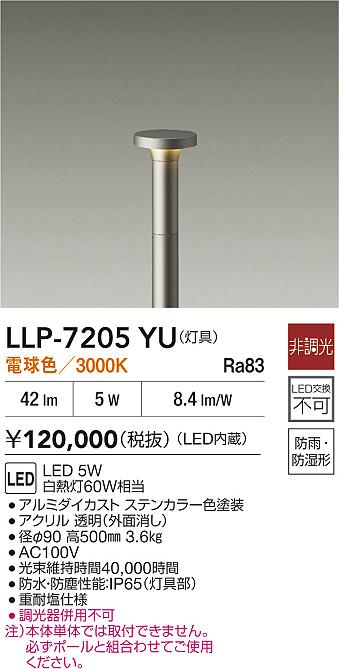 大光電機(DAIKO) LLP-7205YU アウトドアライト ガーデンライト 非調光 電球色 灯具本体 ポール別売 防雨・防湿型 ステンカラー [llp-7205yu]
