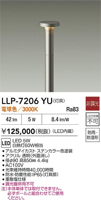大光電機(DAIKO) LLP-7206YU アウトドアライト ガーデンライト 非調光 電球色 灯具本体 ポール別売 防雨・防湿型 ステンカラー [llp-7206yu]