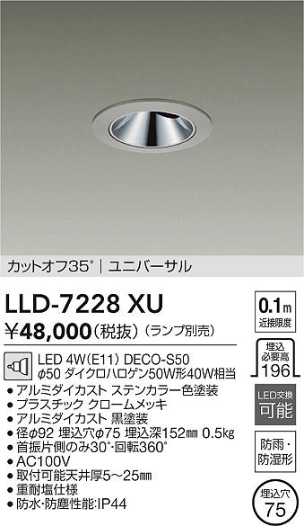 大光電機(DAIKO) LLD-7228XU アウトドアライト ダウンライト 埋込穴φ75 ユニバーサル ランプ別売 電源付(別置) 防雨・防湿型 ステンカラー [lld-7228xu]