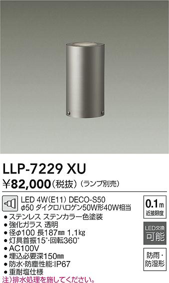 大光電機(DAIKO) LLP-7229XU アウトドアライト 間接照明 グランドライト ランプ別売 電源内蔵 防雨・防湿型 ステンカラー [llp-7229xu]
