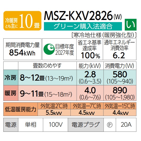 型番:MSZ-KXV2826-W / MSZ-KXV2826 / MSZKXV2826