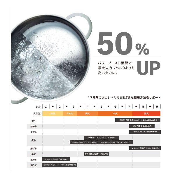 調理ゾーン数/火力調節 4口/17段階