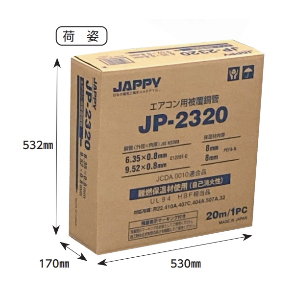 『在庫あり』 JAPPY/ジャッピー JP-2320 ペアコイル エアコン用被覆銅管 2分3分 使用残量表示マーキング付 20m巻 ☆