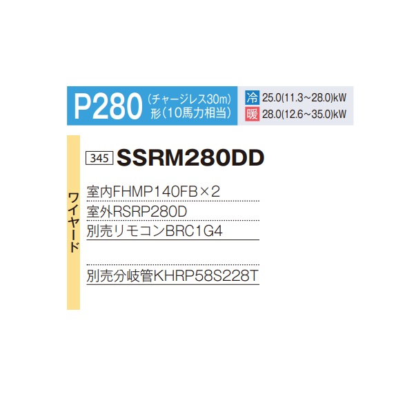 ダイキン 『SSRM280DD+分岐管』 業務用エアコン 天井埋込ダクト形 高静圧 ツイン同時マルチ FIVESTARZEAS P280形 10馬力 三相 ワイヤード ♪