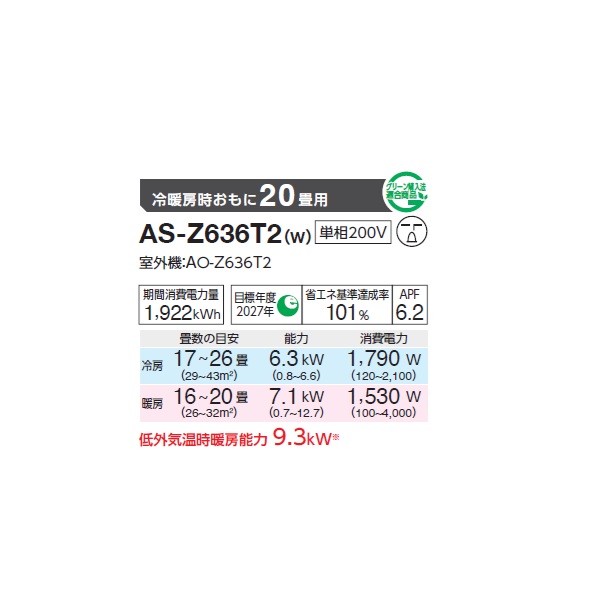 ゼネラル AS-Z636T2 エアコン 20畳 ルームエアコン Zシリーズ ノクリア 単相200V 20畳程度 (AS-Z635S2 の後継品)