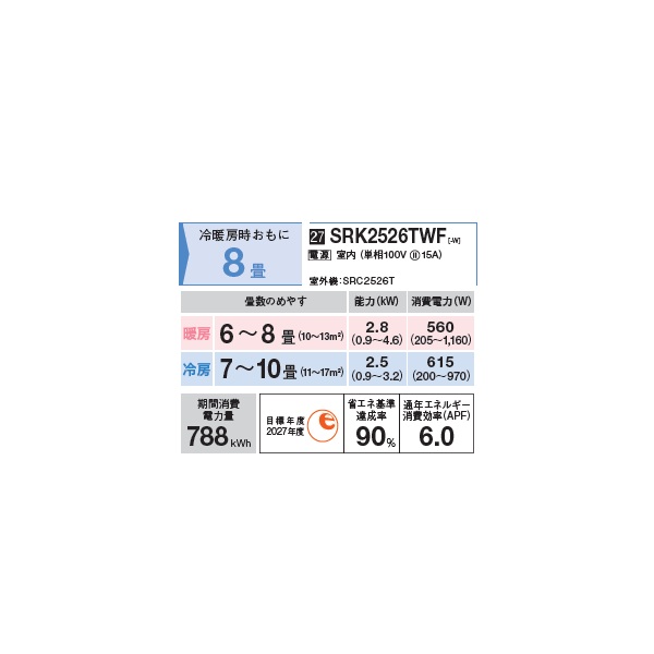 型番:SRK2526TWF-W / SRK2526TWFW / SRK2526TWF
