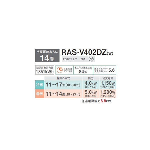 型番:RAS-V402DZ-W / RASV402DZW / RASV402DZ