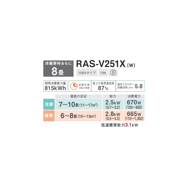 型番:RAS-V251X-W / RASV251XW / RASV251X