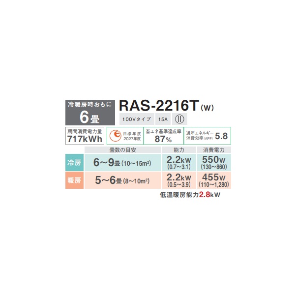 型番:RAS-2216T-W / RAS2216TW / RAS2216T