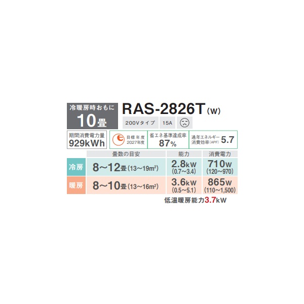 型番:RAS-2826T-W / RAS2826TW / RAS2826T
